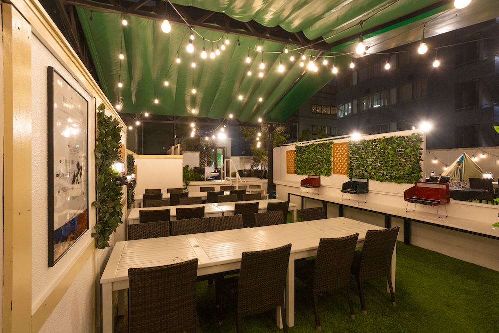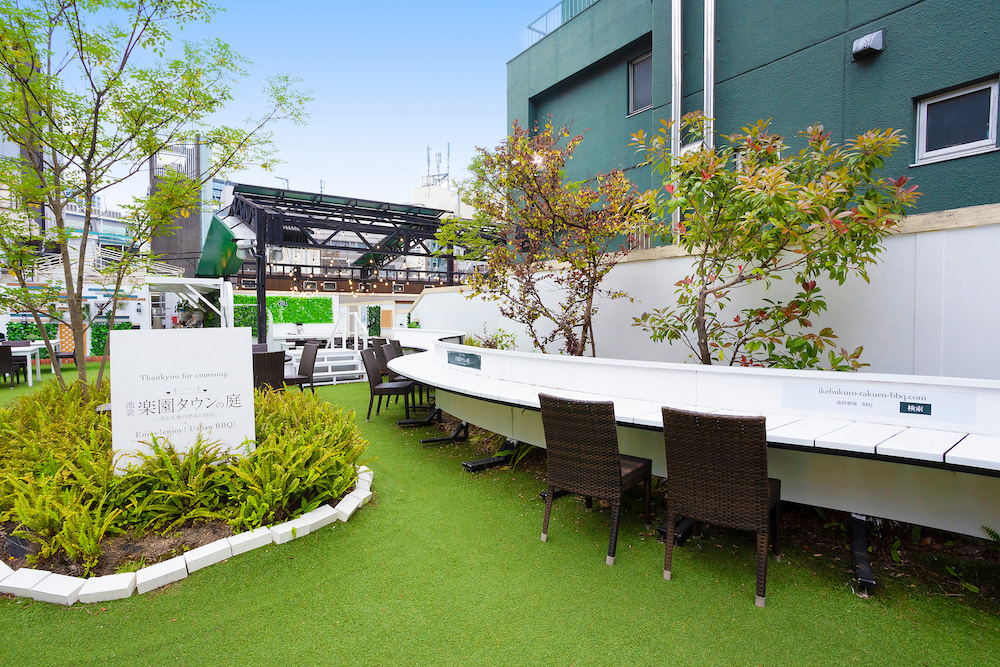池袋楽園タウンの庭では池袋駅の近隣店舗で、当日お買い上げいただいた食材でBBQをお楽しみいただけます。※食材は当日購入されたものに限ります。お買い上げレシートをご確認させていただきます。